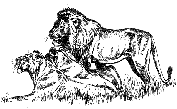 Итак, все вокруг уже проведали о присутствии львов. В опасности находились лишь те животные, которым хищники не были видны. Те же, кто доподлинно знал, где именно находятся их враги, не отрываясь, вглядывались и принюхивались в сторону нарушителей спокойствия. Миновав эту зону всеобщей настороженности, я увидел львов в ста пятидесяти метрах впереди нас.