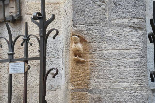 А это та самая, знаменитая сова на стене собора Нотр-Дам-де-Дижон, увы, почти затёртая, за несколько столетий постоянных прикосновений: