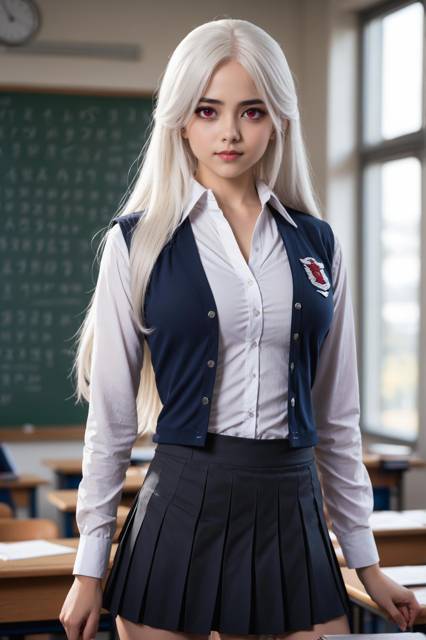 Лана стоит у большой грифельной доски в пустом классе. На доске мелом нарисована стилизованная эмблема Академии Маркатис. Она одета в свою обычную форму, но сидит она на ней с таким шиком, будто это вечернее платье от кутюр. Она оборачивается к камере (к читателю) с той самой своей хитрой, знающей улыбкой.