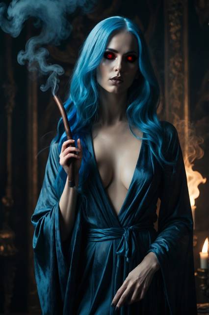 Девушка с синими волосами сделала медленную, глубокую затяжку, затем выдохнула струйку дыма прямо в святая святых дома Дарквуд. Уголки её губ дрогнули, сложившись в улыбку, лишённую тепла, полную усталой иронии и чего-то невыразимо опасного.