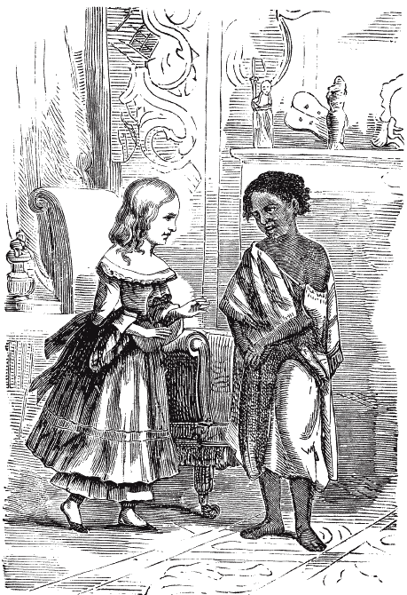 Мисс Офелия, возмущенная поведением Топси, разразилась бурей упреков. Ева, опечаленная, некоторое время стояла молча.