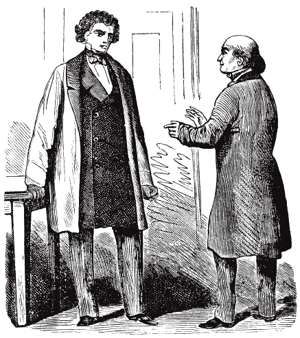 Когда все было в порядке и слуги удалились, молодой человек запер дверь и решительным жестом положил ключ в карман. Затем, обернувшись и скрестив на груди руки, он взглянул прямо в глаза мистера Вильсона.