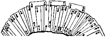 Другой способ закончить этот трюк такой: втолкните карты в колоду, затем заверните колоду в платок так, чтобы он наполовину прикрывал карты. Теперь, держа колоду накрытой платком, протолкните те карты, которые выглядывают снизу колоды, и из середины колоды «выскочит» «любимая» карта.