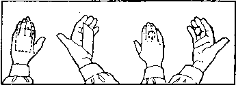 Секрет этого приема заключается в том, что какой-нибудь предмет удерживается в ладони так, чтобы зрители не догадались об этом. Простейшим вариантом «пряток в ладони» является удержание пальцами, когда предмет держится естественным загибом ваших двух средних пальцев. Держа таким способом маленький предмет, например монету или мячик, вы можете свободно и естественно двигать рукой.