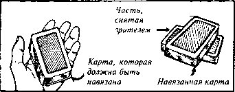 Пусть кто-нибудь из зрителей выберет карту и поместит ее поверх колоды, как это объясняется в разделе «Основные фокусы» (прием «Пассы»), Пусть зритель сосредоточится на своей карте. Держите колоду в правой руке и поместите ее на уровне своего лба, карты должны быть повернуты лицом к зрителям.
