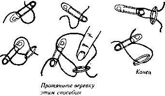 Вам понадобится кусок веревки длиной 1 м. Положите веревку на стол в виде петли и протяните ее через английскую булавку. Возьмите чье-нибудь кольцо и положите его на стол рядом с петлей. Теперь накройте их платком, оставив концы веревки на виду.