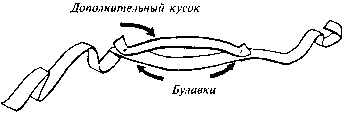 Используйте достаточно тяжелую ленту, длиной 1 м или больше и шириной 2,5 см. Отрежьте от нее кусок около 13 см. Приколите его булавками в центр ленты. Используйте по одной булавке с каждого конца. Когда вы будете держать ленту с приколотым куском, она будет выглядеть точно так же, как и вначале.