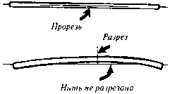 Попросите зрителей немного освободить нить, чтобы согнуть концы соломинки вниз. Это даст возможность освободить середину соломинки от нити. Нить будет под соломинкой. Вставьте ножницы между соломинкой и нитью. Разрежьте соломинку и раздвиньте обе ее части. Дайте им повиснуть на нити, показывая, что нить не повреждена.