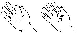 Проведите левую руку над вытянутыми пальцами правой руки. Она должна скрыть их на мгновение. Пока их не видно, вы незаметно прячете наперсток в основании большого пальца правой руки и сжимаете левую руку вокруг указательного пальца правой руки так, как будто снимаете наперсток. Ваша правая рука оказывается свободной. Откройте левую руку и покажите, что наперсток исчез.