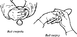 Возьмите ложку за ручку. Покачайте ее вперед-назад несколько раз. Затем крепко сожмите ее в левом кулаке, обхватив пальцами ручку и направив к себе. Держите ее крепко, обхватив вашими пальцами, как будто это кинжал. Теперь разверните углубление ложки вниз, к столу, и накройте пальцами правой руки пальцы левой. Тыльные стороны кистей обеих рук должны быть обращены в правую сторону.