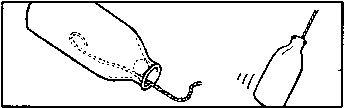 Теперь продолжайте свой рассказ и скажите, что, если бы на молитву волшебника был бы ответ, веревка смогла бы остаться в бутылке. Если бы это была очень вдохновенная молитва, он мог бы постараться сделать что-нибудь еще. Возьмите свободный конец веревки в другую руку и позвольте бутылке свободно раскачиваться на ней.