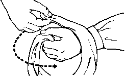 Следующее движение, которое называется «движение весла», легко выполнить. Разверните кисть руки так, чтобы ваша ладонь смотрела вниз. Одновременно с этим движением большим и указательным пальцами поверните нож вокруг оси. (Для этого большим пальцем прокатите нож по указательному пальцу.) Зрителям будет казаться, что вы показываете обе стороны ножа, а в действительности вы показываете только одну. Вам необходимо будет потренироваться в выполнении этого движения.