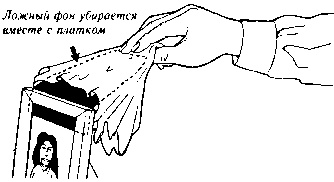 Снимите носовой платок с рамки вместе с черной тканью и спрячьте ее в складках носового платка. Вы можете почувствовать ткань через платок. Возьмите рамку и покажите фотографию. Если вы пожелаете, то можете показать зрителям, что рамка обычная.