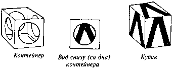 Сделайте из картона контейнер чуть большего размера, чем кубик, так чтобы кубик легко входил и выходил из него. Контейнер делается без верхней крышки, а на сторонах должны быть вырезаны большие круги так, чтобы кубик был легко виден. В действительности контейнер выглядит подобно рамке. Дно также имеет отверстие, подобное отверстиям на сторонах, но изнутри контейнера на дно вы должны наклеить кусок бумаги, чтобы он выглядел так же, как кубик. То есть если вы раскрашиваете кубик красным цветом, то бумага на дне контейнера должна быть тоже красной.