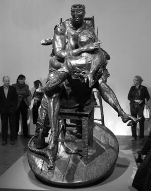 Многие скульптуры датированы 2013 годом. Причём предстают они в неподдельной бронзовой ипостаси. Похоже, что за прошедший месяц наступившего года, кроме прочих, была завершена и одна из самых значительных работ выставки – инсталляция под названием "Воины". Тридцать пять скульптурных голов воинов разных народов и эпох, "насаженные" на стальные строительные леса. Вряд ли здесь можно усмотреть финал произведённого насилия – эти головы не отсечены от тел, скорее они ограничены незримой плоскостью, у многих виднеются детали одежды, словно у каждой головы где-то в запаснике есть изваяние "во весь рост". В комнате, где установлены "Воины", на стены проецируются ролики из ещё не вышедшей западной игры Crysis 3, где несуществующие виртуальные бойцы ежесекундно сражаются в битве, единственный смысл которой – повторяться снова и снова, принося игрокам часы развлечения.