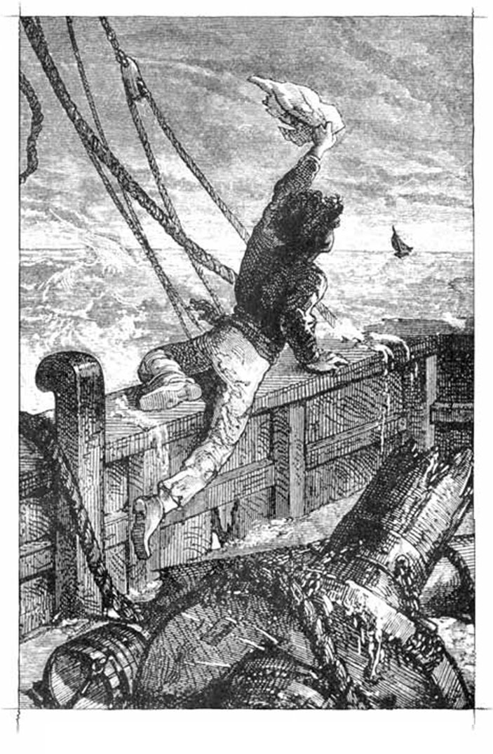 Я вскочил на ют: вдали при слабом свете занимающегося утра я заметил в море черную точку. Это была большая шлюпка, спущенная с нашего корабля.