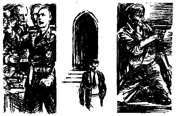 Охранники втолкнули меня в церковь. То, что я увидел, было страшно: перед алтарем толпились смеющиеся офицеры с блестящими позументами и черными лычками на воротниках френчей. Под большим распятием на алтаре колыхалось пламя свечей, господь бог, наверное, удивлялся, видя, как какой-то ординарец, плеснув шнапсу в церковный ковш, пустил его по кругу. Они пили, а орган все гремел: «Германия превыше всего...»