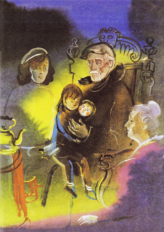 – Ну, тебе понравилась книжка? – спросила девочка, когда закрыла последнюю страницу. – А мне она очень понравилась, очень-очень! Ах, Машенька, – продолжала девочка, – если бы ты только знала, как мне хочется, чтобы ты вернулась домой. Мама обещала, что она тебя вернёт, ты только подожди. Мы сошьём тебе новое платье из моего старого, из которого я уже выросла, и я тебе завяжу мой голубой бант.