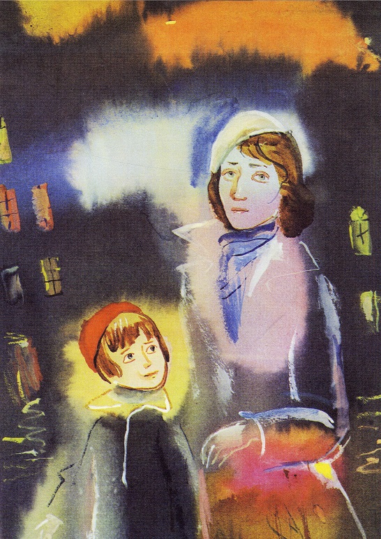 В этот день девочка на уроках сидела плохо, слушала невнимательно, получила два замечания, а на переменках не бегала и во дворе не гуляла, вернувшись домой. Она села у окна и стала смотреть, когда из трамвая выйдет мама. Но вот наконец внизу мелькнул её белый беретик. Не дожидаясь, пока мама поднимется, девочка надела своё пальтишко, из которого уже давно выросла, и вприпрыжку побежала по лестнице.