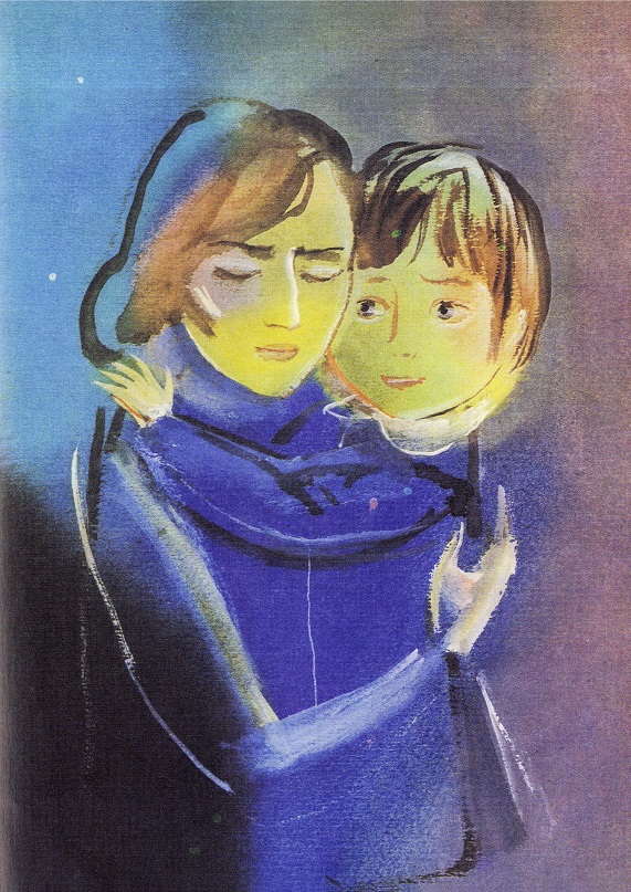 Мама не смотрела на девочку. Она сидела не шелохнувшись и смотрела на крышу противоположного дома. Девочка тихо подошла к ней и провела рукой по её рано поседевшим волосам.
