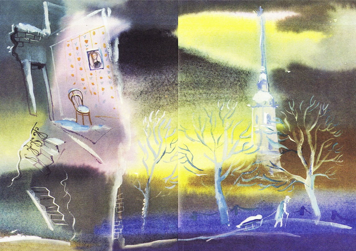 Маму было не узнать. Глаза её блестели, она всё делала быстро, торопливо. У Московского вокзала они сели на трамвай, и, позванивая, трамвай побежал по улицам, потом выехал на мост, и девочка увидела Неву. Нева была чёрной, и не было в ней того простора, что был на Волге, но было что-то другое, какое-то новое волнение, новое чувство, которое стало понятным, когда мама тихо и нежно произнесла: