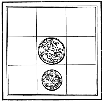 67. Головоломка с монетами.Тут профессор начертил клетки и положил в две из них крону и флорин, [17]17
