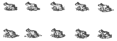 72. Лягушки-путешественницы.Пока мы тщетно пытались решить эту головоломку, Профессор в два ряда расставил на столе десять лягушек, как показано на рисунке.