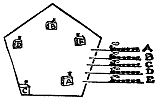 Естественно, после этого чиновникам Поднебесной ничего не оставалось, как уточнить детали. Буквами на плане обозначены места входа каждой дороги в город и расположение соответствующих станций. По достигнутому соглашению ни одна линия не должна была пересекать линий других компаний. В попытках заинтересованных сторон найти решение проблемы было потеряно столько времени, что произошли изменения в китайском правительстве и весь план провалился. Возьмите карандаш и начертите пути от Адо А,от Вдо В,от С до С и т. д. так, чтобы они не пересекались друг с другом и со станциями других компаний.