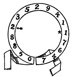 Например, умножив его на 4, мы получим в произведении число 2352941176470588, начинающееся с места, отмеченного стрелкой. Если же мы умножим его на 3, то получим тот же самый результат, только начинающийся с места, отмеченного звездочкой. Далее, головоломка состоит в том, чтобы изменив расположение цифр на ленточке, добиться того же результата, только 0 и 7 на концах ленточки нельзя перемещать на другие места.