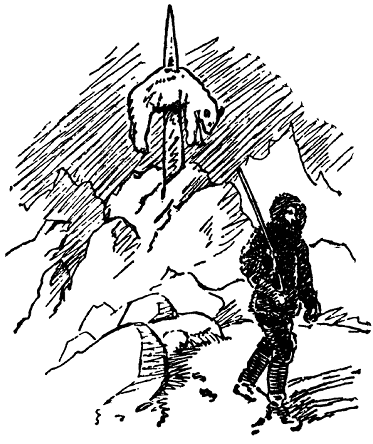 85. Капитан Лонгбау и медведи.Этот знаменитый и довольно правдивый путешественник затаил великую обиду на публику. Капитан Лонгбау утверждает, что во время недавней экспедиции в Арктику он в самом деле достиг Северного полюса, но не смог заставить никого поверить в это. Разумеется, самое трудное в подобных случаях – веские доказательства, но он обещает, что будущие путешественники, которым удастся совершить тот же подвиг, смогут убедиться непосредственно. Капитан говорит, что, добравшись до полюса, он увидел там медведя, который непрестанно ходил вокруг места, где (как настаивает капитан) конец земной оси действительно торчит из земли; медведь был, очевидно, озадачен тем странным фактом, что в каком бы направлении он ни смотрел, оказывалось, что он всегда смотрит на юг. Капитан Лонгбау положил конец его размышлениям, застрелив зверя и насадив его на земную ось (как показано на рисунке) в качестве свидетельства для будущих путешественников, о которых я уже упоминал.