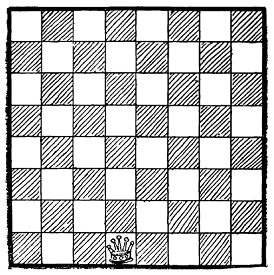 Отметьте путь ферзя на доске и проследите за тем, чтобы он ни разу не пересек собственный след. Это кажется довольно простым, но читатель, быть может, обнаружит, что он попался в ловушку.
