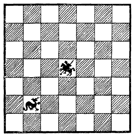 161. Святой Георгий и дракон.Вот небольшая головоломка на уменьшенной шахматной доске из 49 клеток.