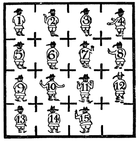 170. Упражнение для узников.На рисунке вы видите план северного крыла некой тюрьмы, где имеется 16 камер, соединенных между собой открытыми дверьми. Пятнадцать заключенных разместили по этим камерам, присвоив им номера. Узникам разрешается менять камеры, как они пожелают, но если когда-либо двое заключенных окажутся в одной камере, их ждет суровая кара.