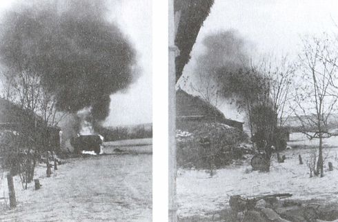 Попадание в наш тягач. Он сгорел со всем, что там было.