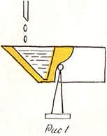 Дозатор жидкости сделан в виде качалки (рис. 1). В левой части дозатора емкость для жидкости. Когда емкость наполнена, дозатор наклоняется влево и жидкость выливается. При этом левая часть становится легче, дозатор возвращается в исходное положение. К сожалению, дозатор работает неточно: выливается не вся жидкость. Как только часть жидкости выльется, облегченная емкость уходит вверх – получается «недолив». Сделать емкость побольше и смириться с тем, что в ней остается часть жидкости? Но качалка капризна: «недолив» зависит от многих причин (вязкость жидкости, трение в опорах дозатора и т. д.). Нужно устранить «недолив» как-то иначе.