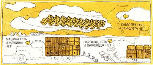 Когда справитесь с этим, возьмитесь за вторую задачу: каким должен быть корабль с идеальным корпусом? Здесь надо использовать оператор РВС. Допустим, корабль стал размерами с молекулу. Собственно, корабля нет. Есть молекула и груз – отдельные атомы. Как молекуле перевозить груз? Представьте себе эту картину и перенесите найденный принцип на корабль, имеющий обычные размеры. Надо добиться, чтобы корпуса не было и чтобы он как бы был…