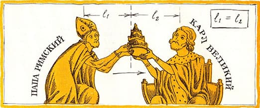 В 800 году папа римский должен был короновать Карла Великого. Перед Карлом возникла серьезная проблема. С одной стороны, надо, чтобы папа возложил корону на Карла: в глазах подданных это означало бы, что Карл стал императором законно, с согласия церкви. С другой стороны, нельзя допустить, чтобы папа возложил корону. Это означало бы, что власть Карлу дал папа римский. Захотел – дал, захотел – отобрал…