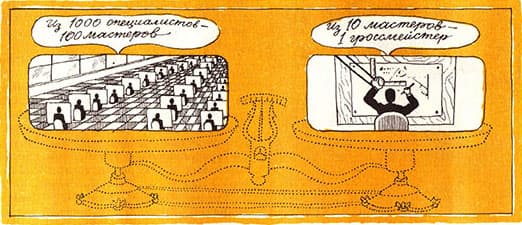 Подчеркиваю: специалистом может стать каждый. Нужно учиться, вот и все. Из тысячи человек, окончивших среднюю школу, наверное, вся тысяча может стать специалистами. Реально этого не происходит, но мы рассматриваем вопрос в принципе. Итак, тысяча из тысячи. А потом из тысячи специалистов только сто становятся Мастерами. И опять-таки надо подчеркнуть: в принципе, Мастером может стать каждый. Но реально Мастером становится один из десяти специалистов, потому что за мастерство надо платить огромным трудом. Специалист напряженно учится пять-шесть лет. Ну, десять лет. Мастер учится всю жизнь. Специалист работает семь-восемь часов в день. Пусть даже девять-десять. Мастер все время занят своим делом. Иногда говорят: «Посмотрите, какой талантливый человек. Все ему дается легко…» Это бессмысленный набор слов. Талант на 99 или на все 100 процентов состоит из труда.