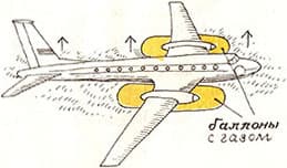 Задачу 10 об окраске древесины вы, вероятно, решили легко: надо окрашивать дерево до того, как оно срублено. Раствор краски подают к корням, и краска, вместе с соками, разносится по всему дереву. Нетрудно решить и задачу 12 об обработке тонких листов стекла: на время обработки их складывают вместе, в толстую пачку. В задаче 14 о самолете, потерпевшем аварию, есть подсказка: дирижабль надо использовать и дирижабль не надо использовать. Под крыльями самолета, потерпевшего аварию, укладывают продолговатые эластичные баллоны и наполняют их сжатым воздухом. Баллоны осторожно приподнимают самолет. А внизу, под баллонами, установлены тележки; можно буксировать самолет. Дирижабля нет и он как бы есть; самолет поддерживается баллонами с газом.