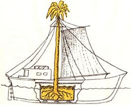 Если судно идет без груза, приходится для устойчивости загружать балласт – песок, воду. Врунгель вместо песка взял землю. Она служила балластом и одновременно почвой, на которой росла мачта-пальма.