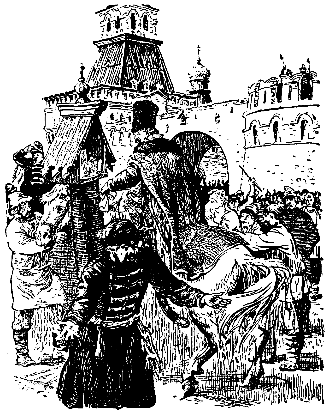 Закричали, заулюлюкали мужики. Кинулись за царёвыми слугами. Едва укрылись те за Спасскими кремлёвскими воротами.