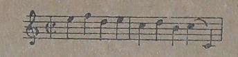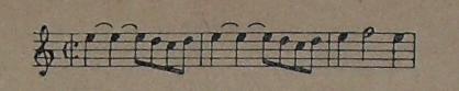 Два первых такта этой мелодии они поют, покуда не кончатся слова, а затем идет последний. Иногда они исполняют ее в два голоса, в терцию, до последних двух нот, которые поются в унисон.