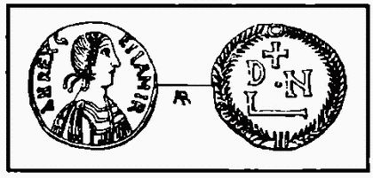 Рис. 84. Монета Витигиса с портретом императора Юстиниана I