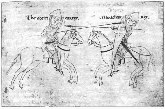 Рис. 27. Бой Теодориха с Одоакром (из древней Веронской рукописи)
