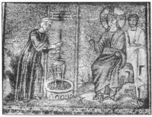 Рис. 52. Иисус Христос и добрая самаритянка (мозаичное панно, расположенное на верхнем участке одной из стен главного нефа дворцовой церкви Теодориха)