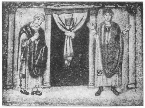 Рис. 53. Фарисей и мытарь (мозаичное панно, расположенное на верхнем участке одной из стен главного нефа дворцовой церкви Теодориха)