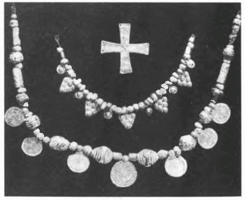 Рис. 60. Готские ожерелья и крест из захоронений в Кастельтрозино