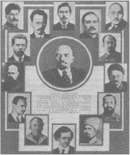 1-й ряд сверху И.В. СТАЛИН, В.Н. МИЛЮТИН., А.И. РЫКОВ, А.Г. ШЛЯПНИКОВ, Н.П. АВИЛОВ (ГЛЕБОВ),