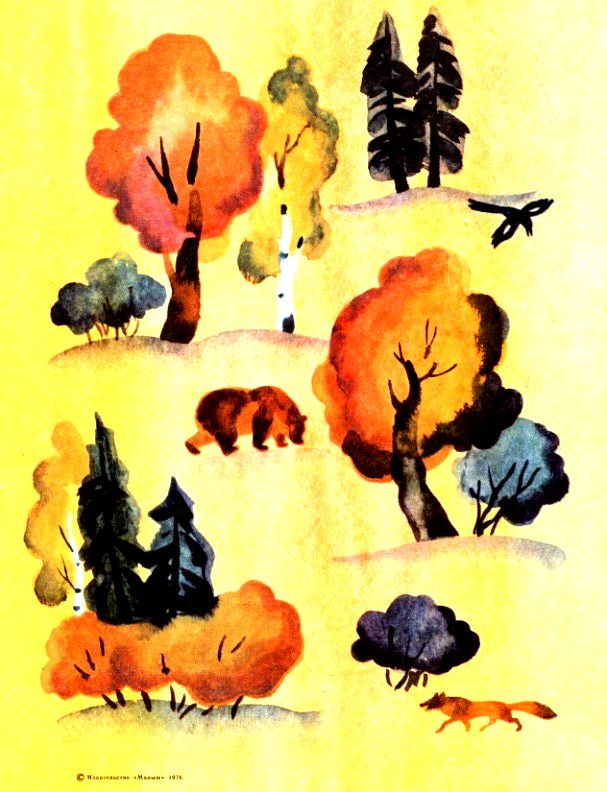 В воскресенье встали мы пораньше и пошли в лес. Стая галок пронеслась над нами, у стогов важно прогуливались голуби.