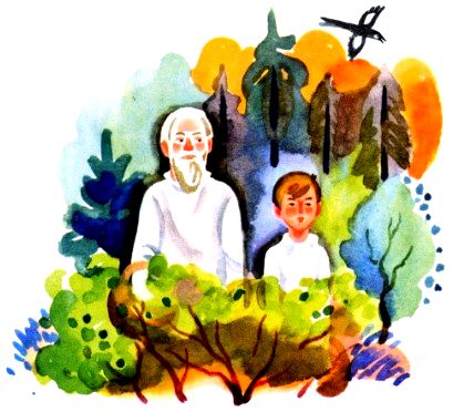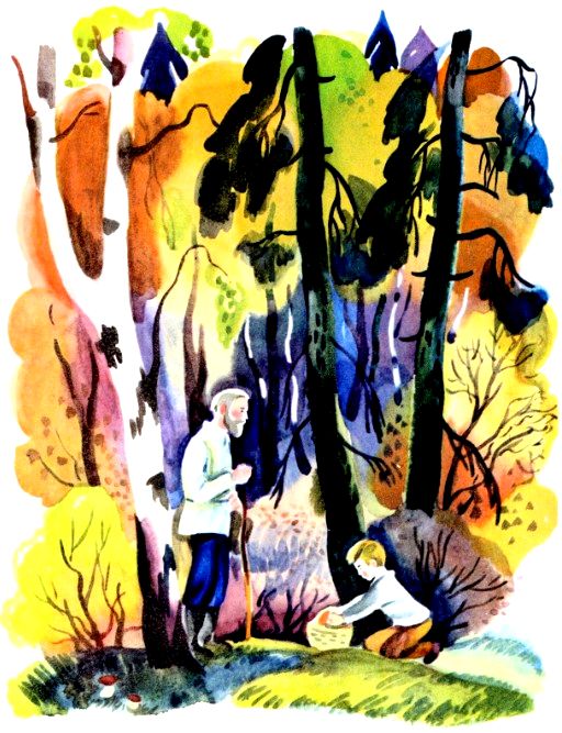 – Пора и домой идти, – говорит дед, вставая, – всё лесное богатство нам с тобой вдвоём не унести. Посмотри, какой добрый и щедрый лес: и человека накормит, и птицу, и зверя – никого голодным не оставит.